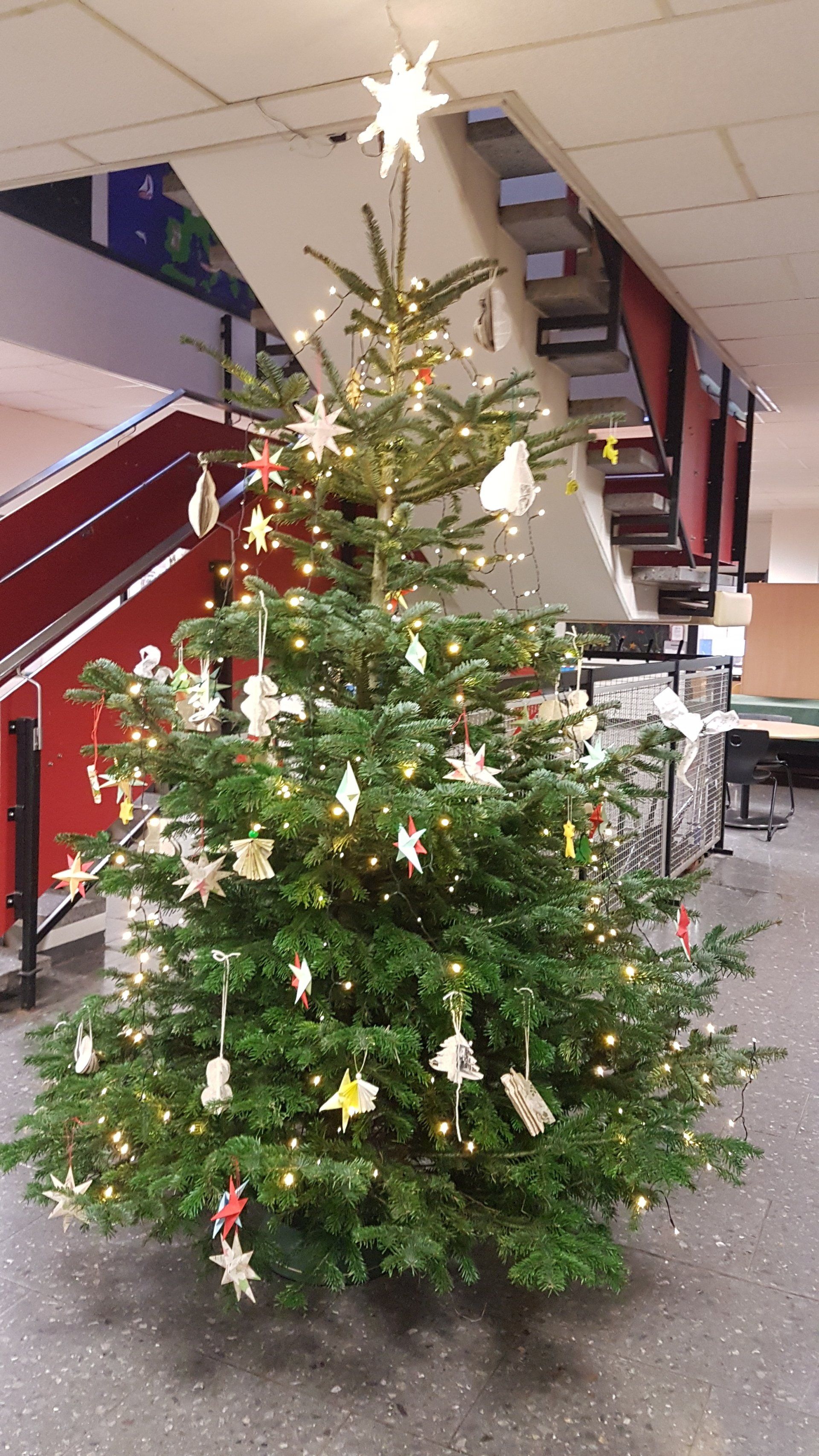 Normalerweise drängen sich Schüler und Besucher immer montags vor Weihnachten dicht an dicht im Eingangsbereich der Humboldt-Schule um den Kindern der Grundschule und der Förderstufe zu lauschen, die Weihnachtslieder und –gedichte vortragen oder mit ihren Instrumenten musizieren. Dieser Tage ist es eher still um den liebevoll geschmückten Weihnachtsbaum im unteren Flur. Die Corona-Pandemie und die damit notwendigen Abstandsregeln machen ein gemütliches Beisammensein dieses Jahr leider unmöglich. Trotzdem versucht die Schulgemeinde wenigstens ein wenig weihnachtliche Stimmung aufkommen zu lassen. Ein „Vorbote“ kam schon am 6. Dezember still und heimlich vorbei: Der Nikolaus hatte für alle Kinder der HBS eine kleine Überraschung, die Konrektorin Miriam Wohlfart-Bornemann und Schulleiter Jörg Thiele für ihn an die Kinder weitergaben.