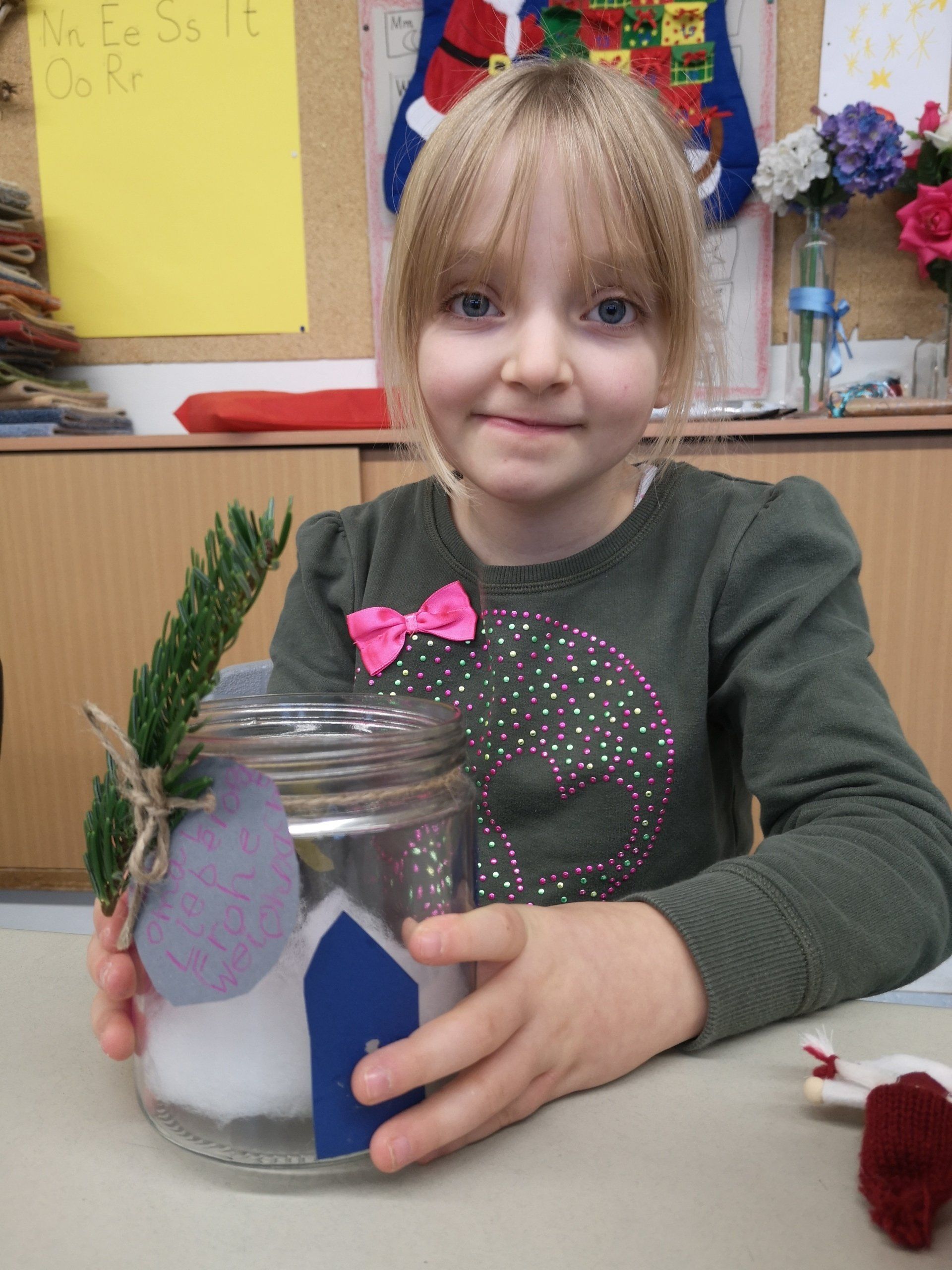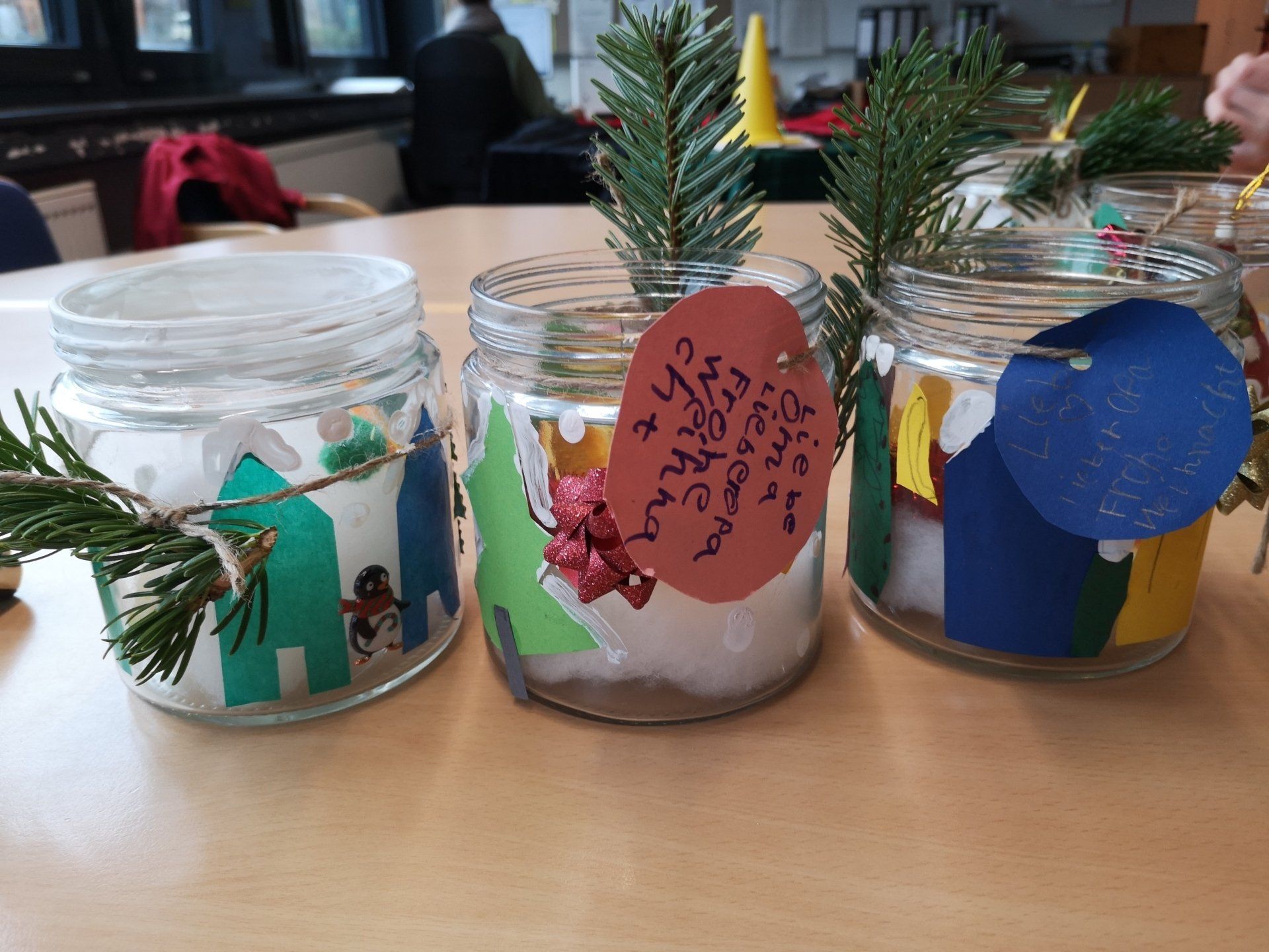 Kinder der Humboldt-Schule basteln Weihnachts-Einmachgläser für Senioren