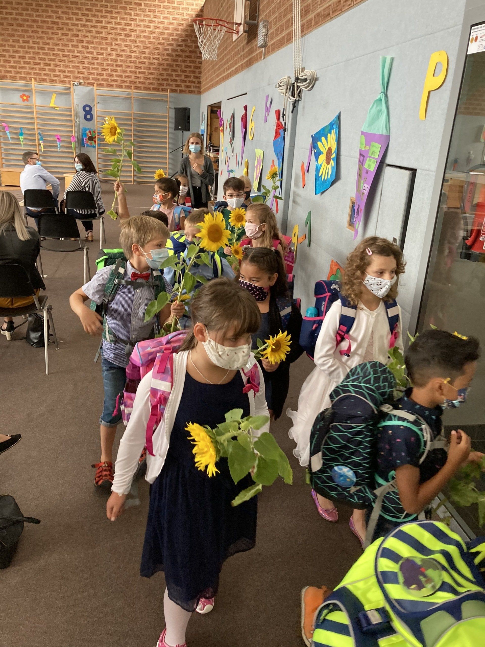 Die Einschulungsfeiern der Klassen 1 und der Vorklasse sowie der Klassen 5 verliefen in diesem Jahr bedingt durch die strengen Hygienevorschriften anders als gewohnt. Alle neuen Schulklassen wurden getrennt voneinander in der Turnhalle begrüßt. Herr Thiele hieß am Montag die Fünftklässler willkommen, Frau Wohlfart-Bornemann fand an den darauffolgenden Tagen wohltuende Worte für die neuen Erstklässler. Ganz gespannt waren alle Kinder natürlich auf ihre Klassenlehrerinnen und ihren Klassenlehrer, ihre Klassenkameraden und auf den Inhalt der großen Schultüte. Auf ein Unterhaltungsprogramm musste leider verzichtet werden. Trotzdem war der erste Schultag für alle ein gelungener Start ins neue Schuljahr. Mit kleinen Begrüßungsgeschenken in den Händen machten sich die Kinder frohen Mutes auf den Weg in ihre Klassenzimmer, begleitet von den Klassenlehrerinnen und Klassenlehrern. Wir heißen unsere "Neuen" herzlich willkommen und wünschen allen Kindern viel Freude und Erfolg in unserer Schule!