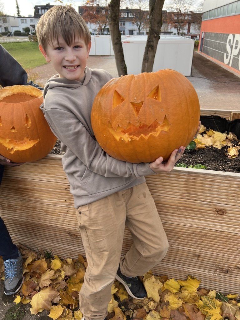 In den zwei Wochen vor den Herbstferien schnitzte jedes Kind einen Kürbis, sodass Halloween gefeiert werden konnte.