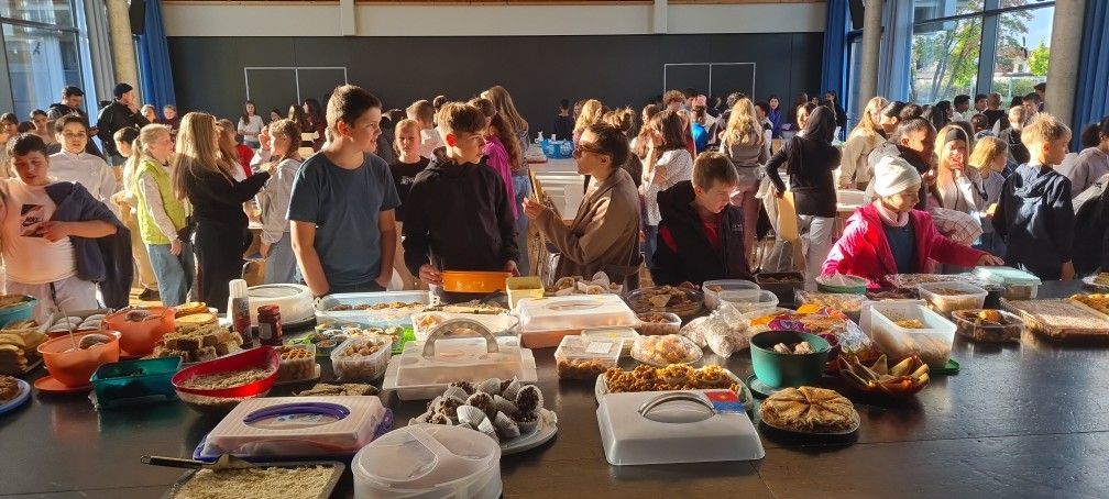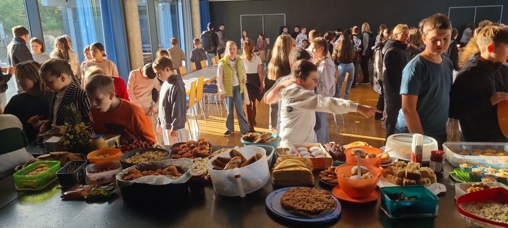 Einen besonderen Vormittag verbrachten Kinder, Eltern und Lehrkräfte der Förderstufe Ende September in der Aula der ALS. Für diesen Tag der Begegnung hatten sehr viele Eltern mit ihren Kindern eine Vielzahl an Speisen, Snacks und süße Leckereien aus ihren Heimatländern vorbereitet. Das Buffet auf der Bühne und an weiteren Tischen war sehr groß, die Auswahl riesig. Es war für jeden Geschmack etwas dabei. An den Tischen kam man beim Essen mit den Nachbarn ins Gespräch, nicht nur über schulische Themen. Bei diesem Fest wurde deutlich, dass wir an der Förderstufe viele verschiedene Kulturen und Nationen vereinen, die nicht nur zusammen lernen, sondern auch zusammen ausgelassene Feste feiern können. Das ist ganz im Sinne von Förderstufenleiterin Nina Best, die das Fest vorbereitet und organisiert hatte. Aufgrund des großen Erfolges steht jetzt schon fest, dass der Tag der Begegnung sicher wiederholt wird.