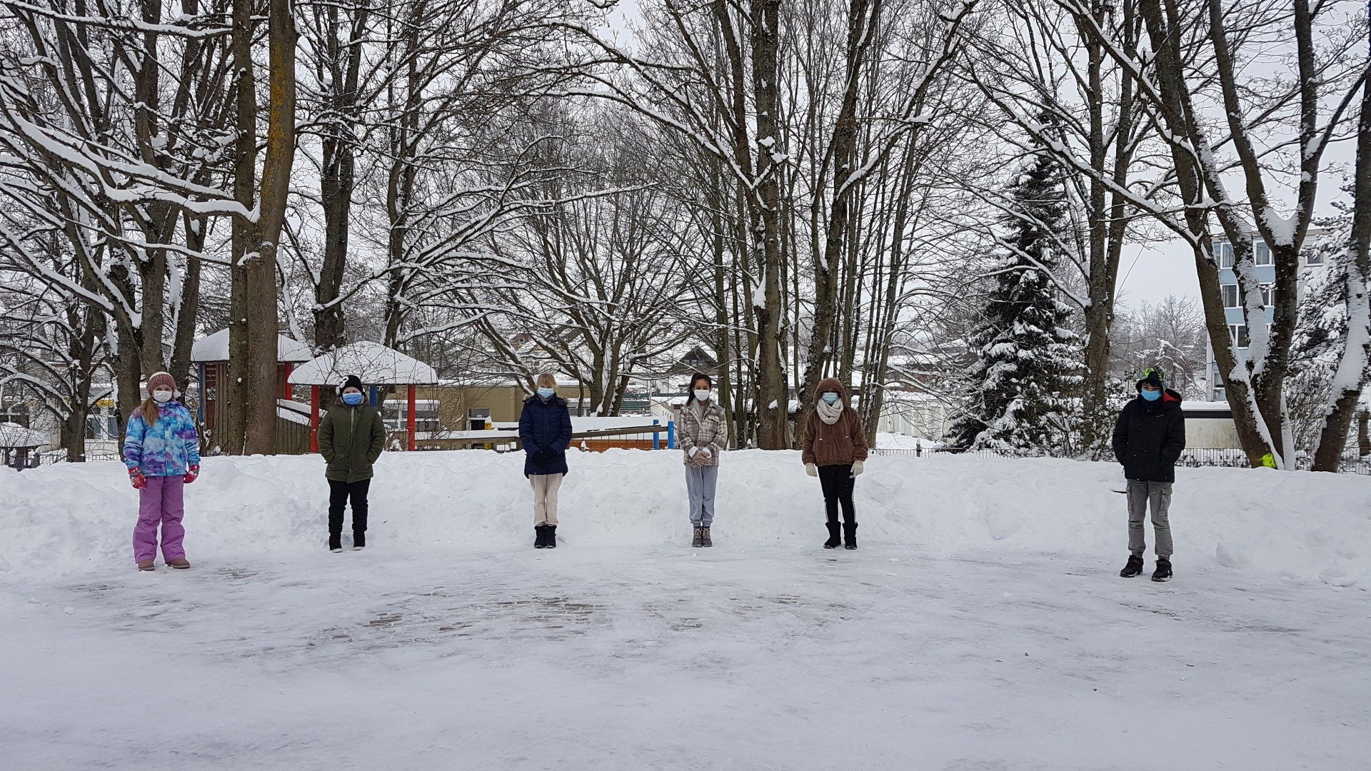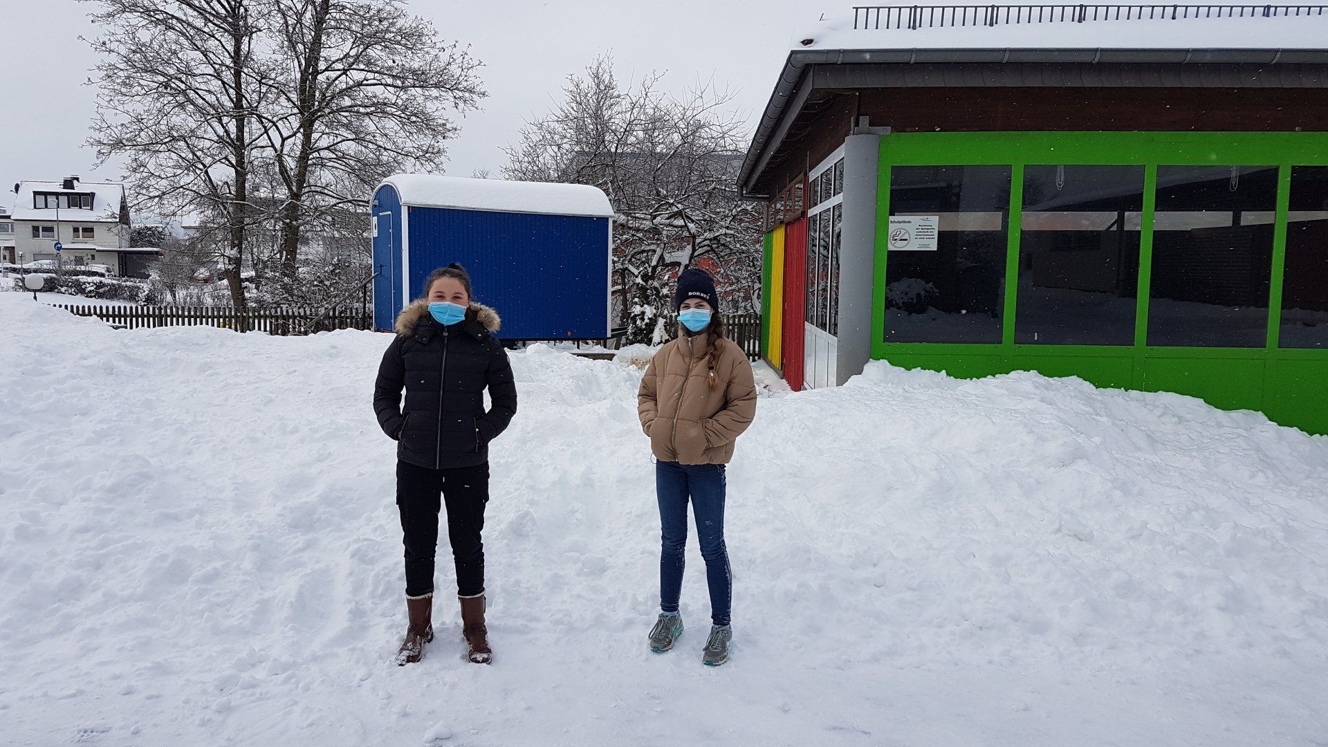 Heftiger Schneefall verwandelt Schulhof in Winterwunderland